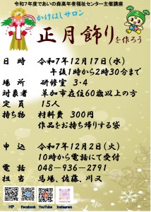 - 草加市内在住の60歳以上の方・18歳以上で障がい者手帳をお持ちの方に対し、各種福祉サービス等を提供すると共に、教養、運動講座の開催や、サークル活動の育成等を行います。