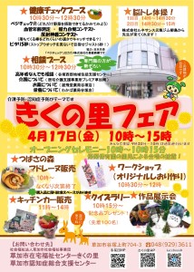 ・きくの里では介護(予防)、認知症(予防)に関するボランティアを募集しています。各種事業のお手伝い、様々な特技を教えてくださる方等々。興味のある方はご連絡下さい。