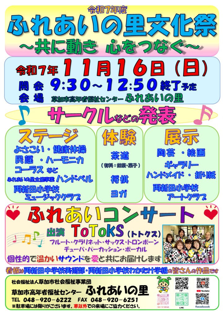 「ふれあいの里文化祭 ~共に動き 心をつなぐ~」開催のご案内