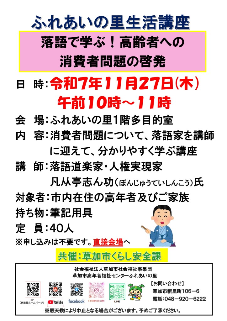 ~落語で学ぶ!高齢者への消費者問題の啓発~と題して生活講座を開催します。